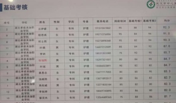 2024年10月8日,我校赴武汉市中心医院实习队长张瑞熙反馈,我校实习生在武汉市中心医院南京路院区整体考核分数最高,护理专业汪伊睿同学更是获得总分最高分的好成绩。这次考核中我校学子力压多个院校(其中还有好几所公办院校)考核分数勇夺第一。