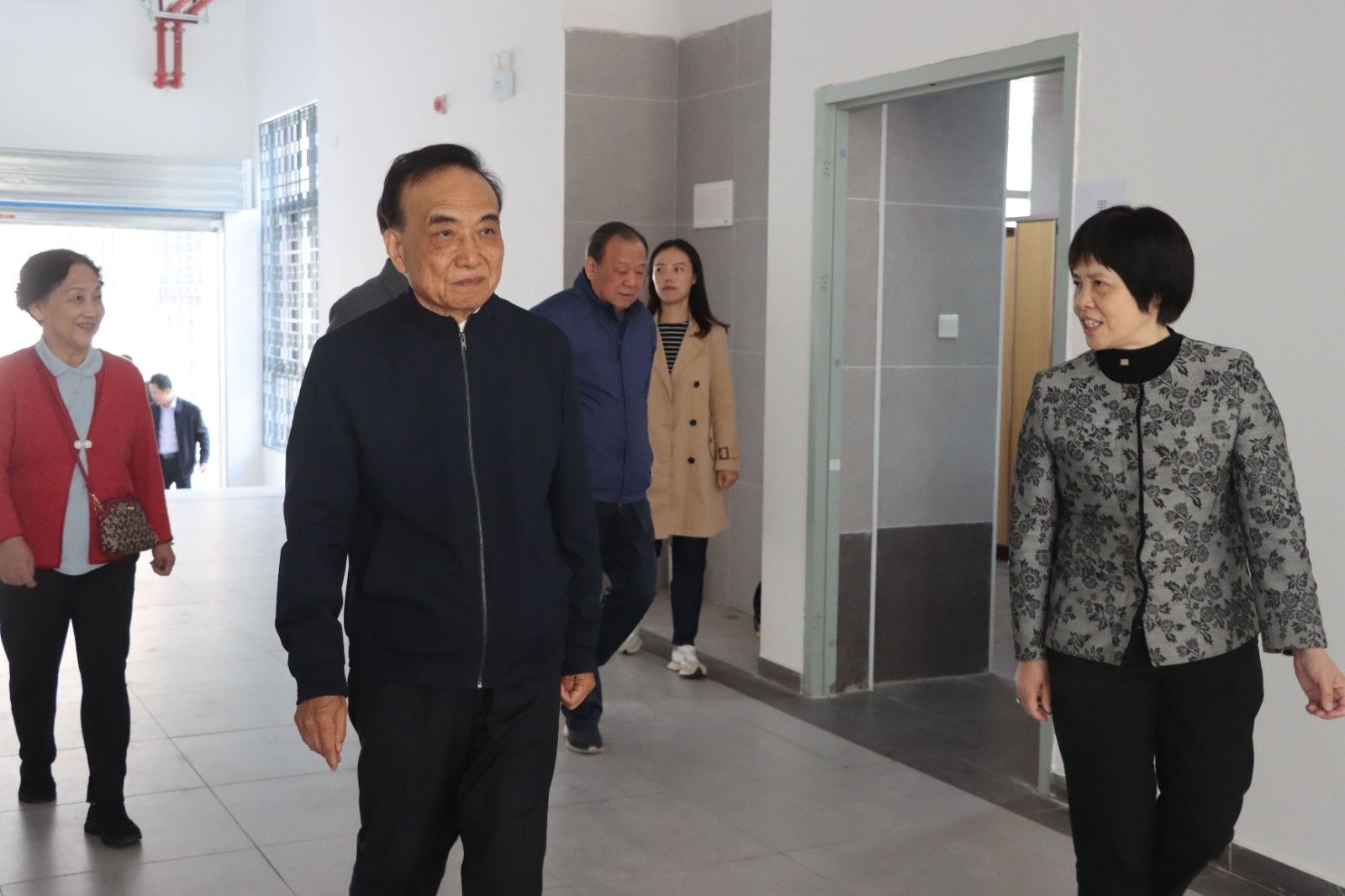 参观完学生宿舍后,程康彦一行先后参观了我校智能制造学院实训楼、行政楼、医事科技学院实训楼、图书馆,并在行政楼一楼拍照留念。在图书馆大厅,他连连称赞:“这是我见到的最好的图书馆!”