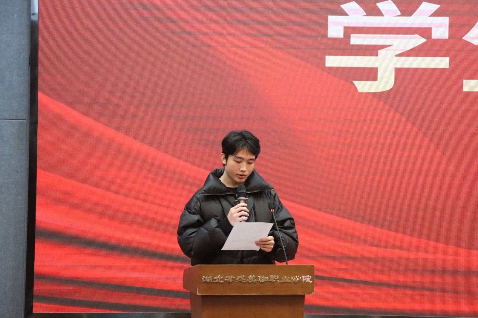 学生代表张瑞熙同学随后走上讲台,满怀热忱地分享道:“实习让我深刻领悟到护理工作的价值。看到患者在我们的护理下康复,听到他们的感谢,我在护理道路上的脚步更加坚定。护考虽充满挑战,但只要我们持之以恒、勇往直前,就一定能成功,成为守护生命的白衣天使。”张瑞熙同学的发言说出了同学们的心声,增强了大家对护理事业的使命感和对护考的期待。这不仅是个人的心声,更是全体同学的共同信念,激励着大家为了护理事业的理想而努力拼搏。