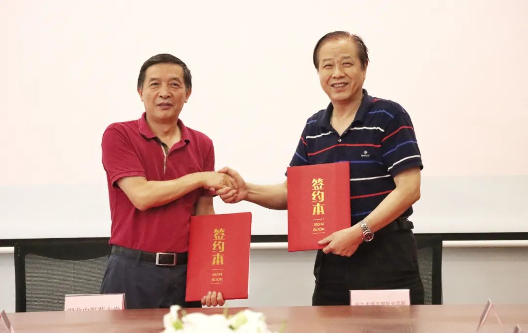随后我校李友清校长和湖北中医药大学李水清书记代表两校签署了《湖北中医药大学支持湖北孝感美珈职业学院合作框架协议书》。根据双方协议,湖北中医药大学将依托自身优势专业,支持我校办好涉医类相关专业,指导我校加强专业内涵建设、深化人才培养模式改革,合作开展教育教学项目研究,提高办学质量和水平。同时中医药大学护理等专业临床实验实训中心作为我校的校外实验实训基地,承接我校相关专业学生临床实验实训教学项目。