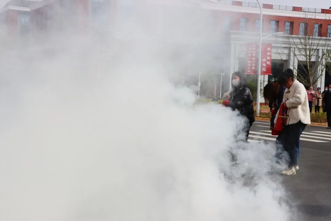 演练活动中,我校总务处张劲松处长针对如何正确使用灭火器进行了详细地指导,让大家进一步了解灭火器的构造。并提醒大家在使用灭火器时要保持冷静,遇到火情不要慌张,牢记“一晃、二拉、三压、四喷”的动作要领。“一晃”就是将灭火器上下摇动;“二拉”就是拉出灭火器上部的保险销;“三压”就是灭火器的橡胶管喷嘴朝向火焰的根部,压下阀门;“四喷”就是在喷射时,手持灭火器成弓步站立,不要离火太近。讲解后,为了增进大家进一步体验,张处长点燃桶中的汽油,等火焰燃烧起来后,亲自示范,按照干粉灭火器的操作流程和正确使用方法进行演示,灭火器的橡胶管喷嘴朝向火焰的根部,对准火焰快速进行灭火。让每位师生都能学会使用灭火器的正确方法,提高自我安全意识。
