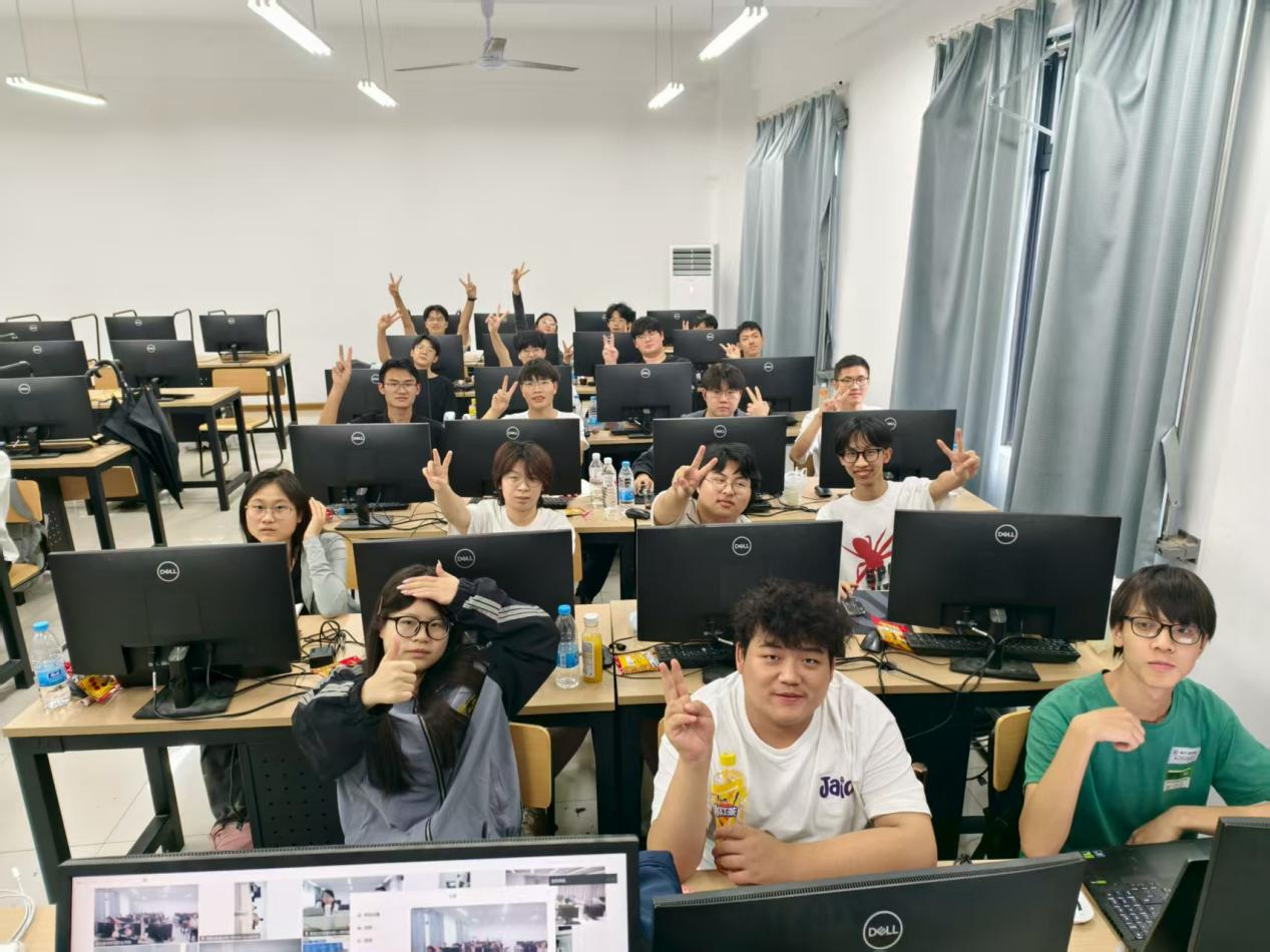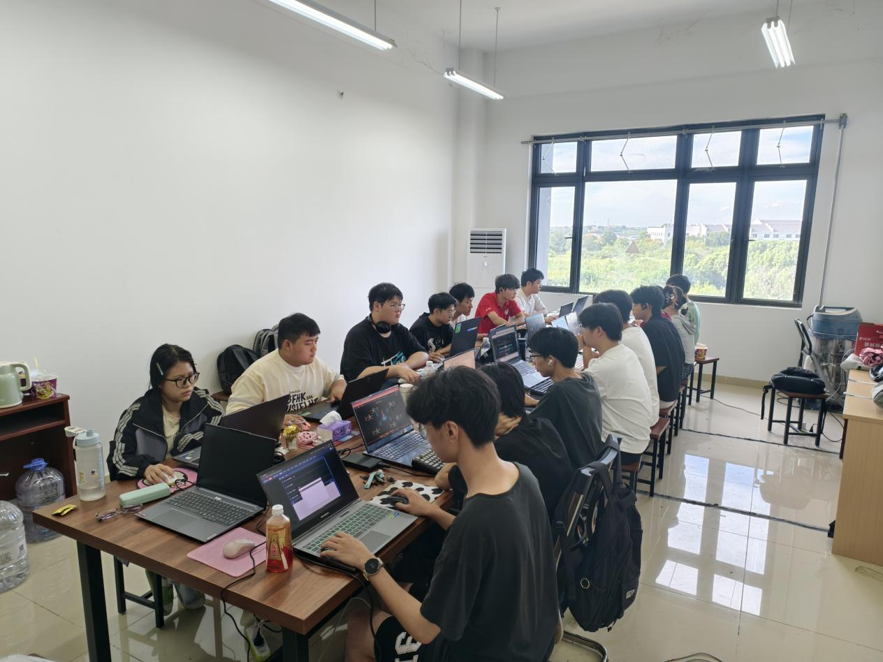 面对这场“升级版”的较量,同学们没有丝毫退缩。集训期间,高强度的训练成为日常:白天,他们埋首于数据海洋,反复打磨方案细节,在一次次讨论与推演中完善策略;夜晚,实训室的灯光常常彻夜通明,许多同学更是通宵达旦、彻夜无休 —— 或是为了优化一个模型参数反复调试,或是为了完善一份汇报方案逐字斟酌,或是为了模拟一场战略博弈持续推演。盛夏的蝉鸣与深夜的键盘声交织,见证着他们为梦想全力以赴的每一个瞬间。