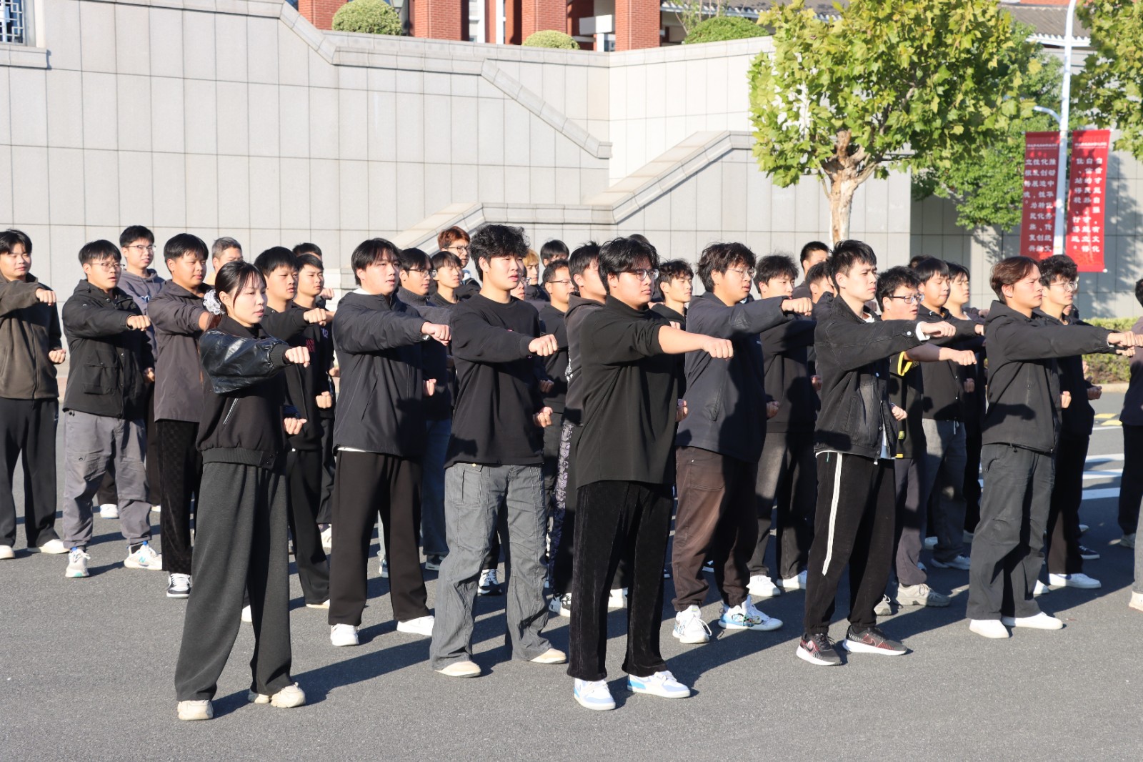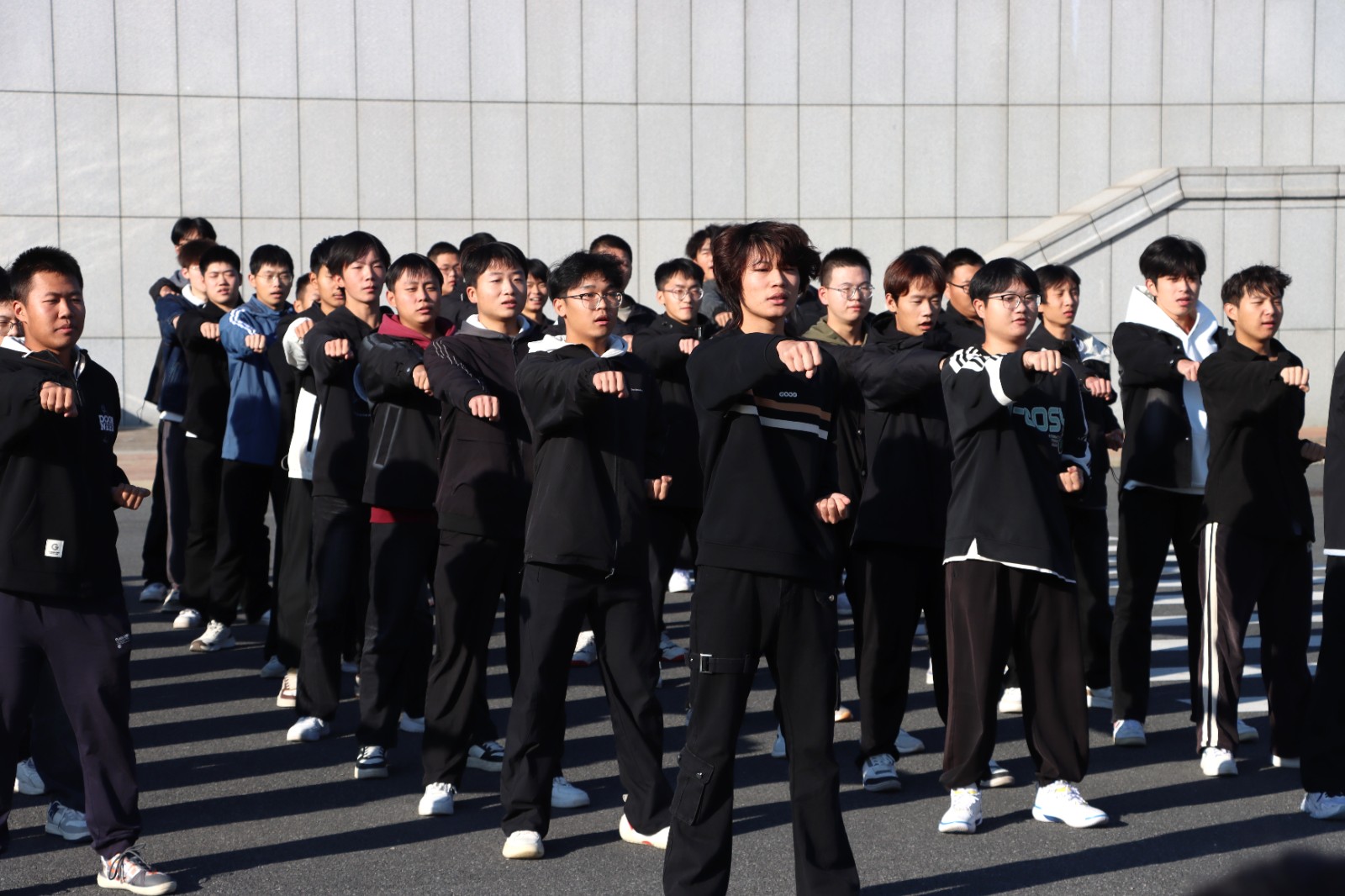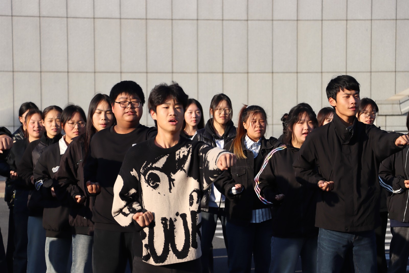 本次PK赛延续“冲拳发声”与“经典诵读”两大传统环节。在秋日暖阳下,行政楼广场上口号声声,书声琅琅。冲拳发声环节,同学们出拳刚劲,呐喊震天,展现了阳刚之气与团队力量;经典诵读环节,各班集体诵读《朱子治家格言》或《论语》选段,在古韵书香中传承文化精髓,彰显了美珈学子的文化底蕴。