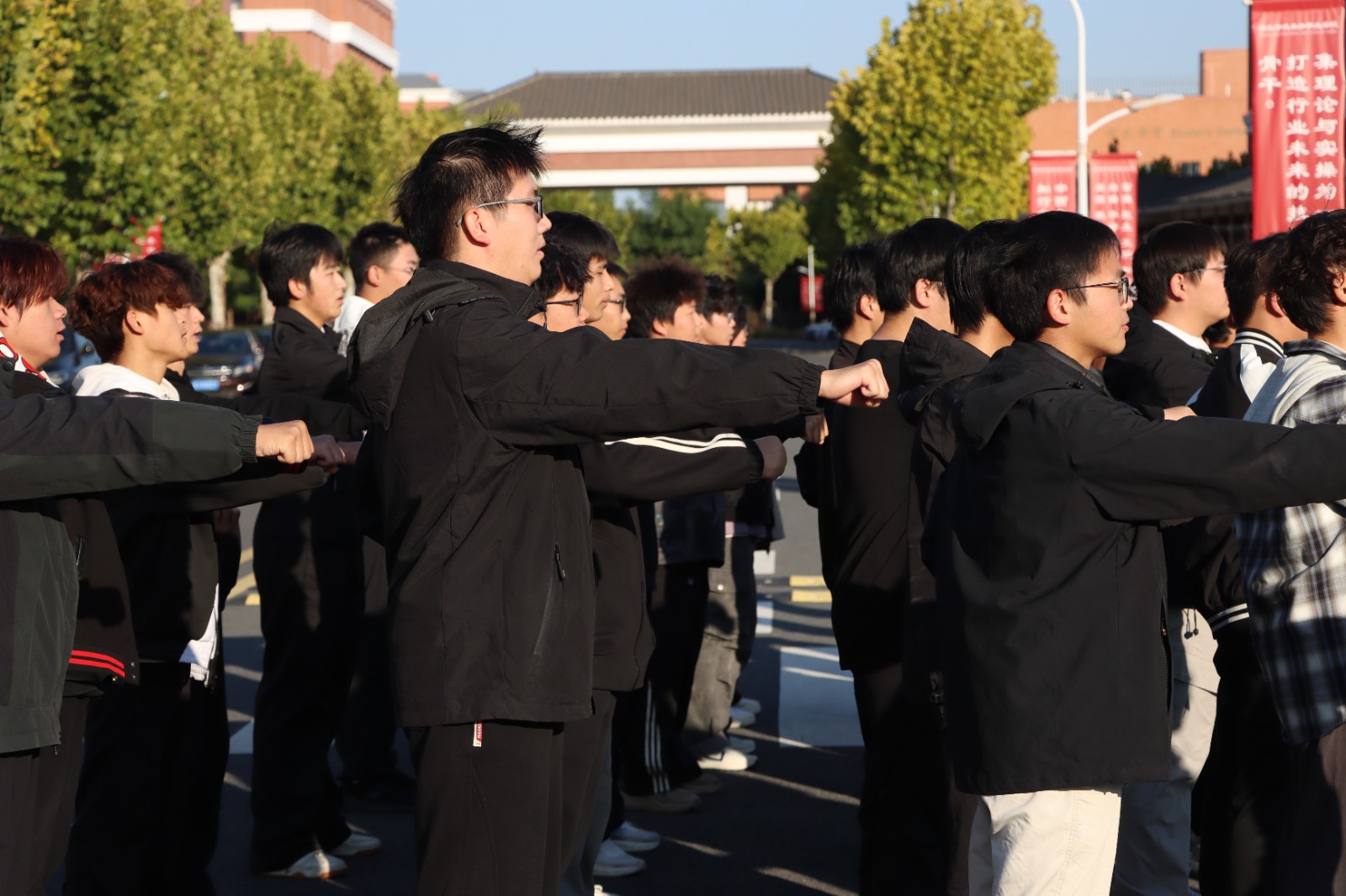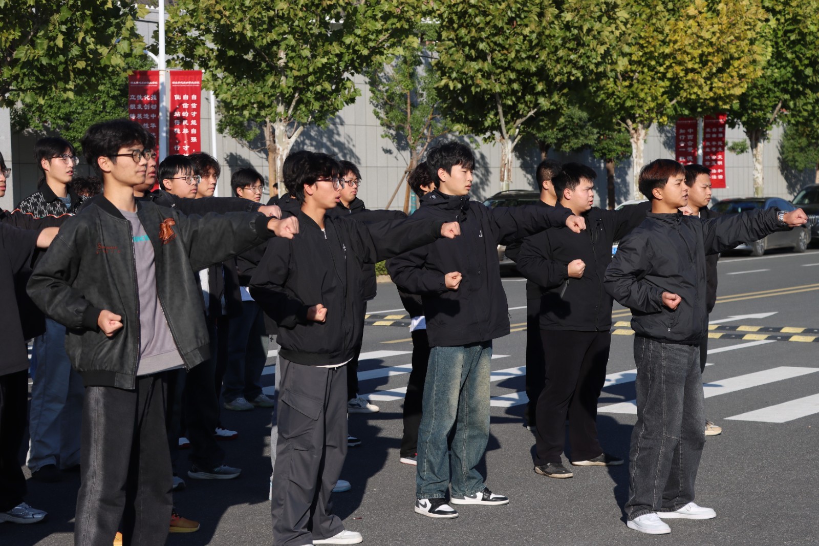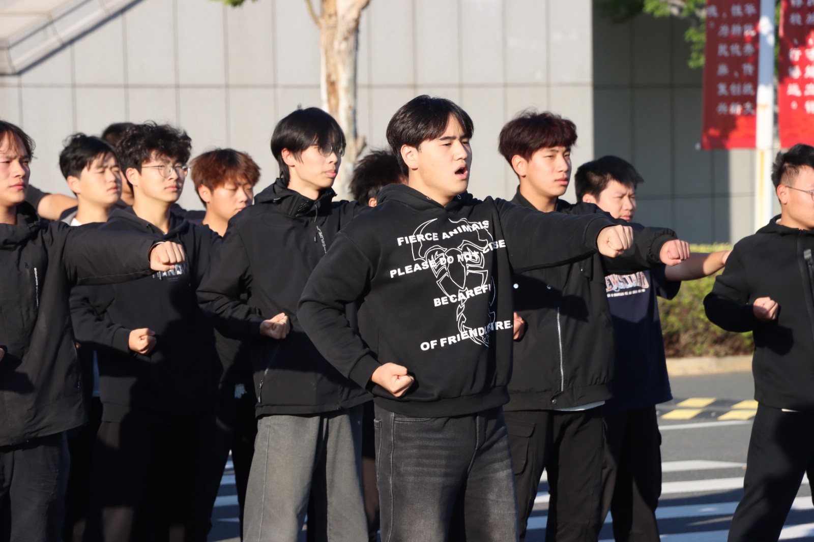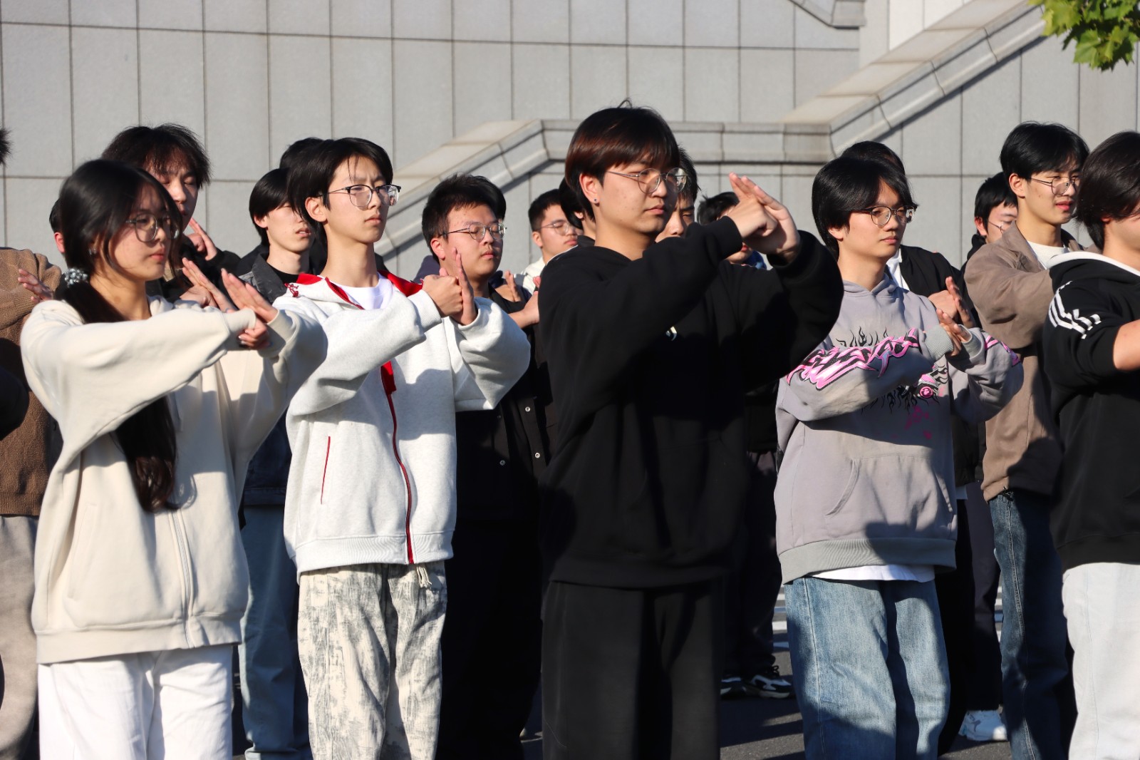 本次PK赛延续“冲拳发声”与“经典诵读”两大传统环节。在秋日暖阳下,行政楼广场上口号声声,书声琅琅。冲拳发声环节,同学们出拳刚劲,呐喊震天,展现了阳刚之气与团队力量;经典诵读环节,各班集体诵读《朱子治家格言》或《论语》选段,在古韵书香中传承文化精髓,彰显了美珈学子的文化底蕴。
