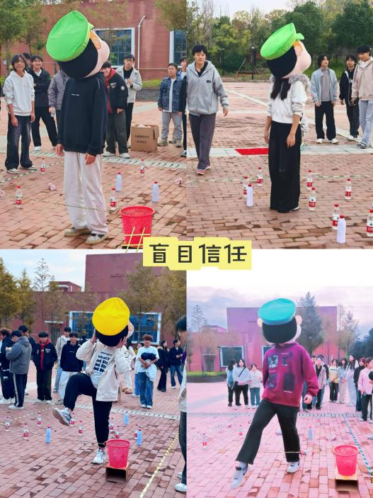 整个嘉年华中,人气最旺的当属“心·联结”社交支持区。该区域设置了四大互动环节,旨在通过合作与挑战促进人际沟通与信任建立。“盲”目信任环节,一人蒙眼闯关,一人言语指引,极大地考验并增强了搭档间的默契与信任。“你划我猜”则妙趣横生,需要搭档间精准的表达与理解。此外,“足间按摩”指压板跳绳、“投入心壶”精准投掷等个人挑战项目也吸引了大量同学一试身手,成功完成挑战即可获得兑奖券。