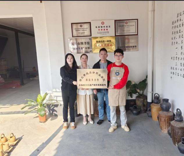 在汉川市杨林乌金壶非遗传承基地,联合工作组与基地负责人、汉川非遗传承人刘海霞及其传承伙伴,正式达成共建非物质文化遗产校外实践基地合作。思政老师杨怡雯详细了解了此项非遗技艺并初步构建了相关传承活动。未来马克思主义学院(通识教育课部)将牵头把非遗元素融入思政课与通识课程,学工处则通过校园活动、社团实践推动非遗传播,形成“课程教学+实践体验+文化传播”的非遗传承体系。此次共建不仅将丰富学校中华优秀传统文化传承的实践载体,更让地域非遗成为涵养学生文化自信的重要源泉。