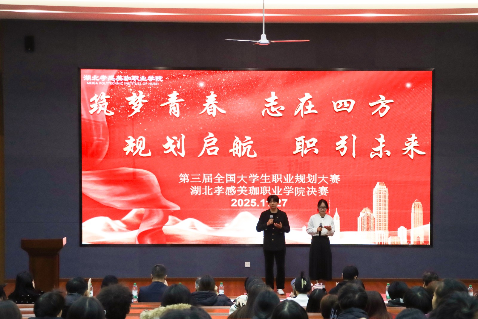 初冬暖阳映校园,青春逐梦正当时。11月27日,由就业处主办,教务处、学工处协办的第三届全国大学生职业规划大赛湖北孝感美珈职业学院决赛顺利举行。本次大赛以“筑梦青春志在四方,规划启航职引未来”为主题,聚焦成长赛道,吸引了全校大一、大二 1900余名学生踊跃参与,历经层层筛选,8位优秀选手脱颖而出,在决赛舞台上展现了新时代大学生对职业未来的深刻思考与清晰规划。