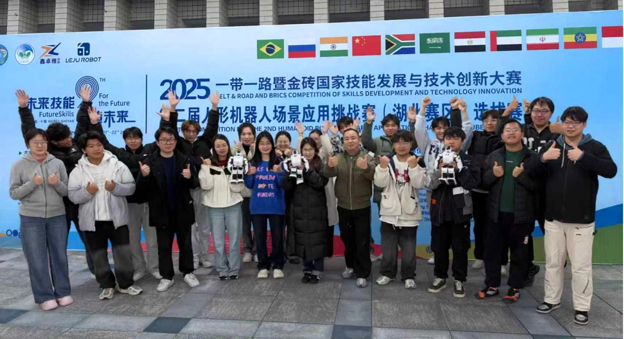 在近日落幕的2025“一带一路”暨金砖国家技能发展与技术创新大赛第二届人形机器人场景应用挑战赛湖北赛区选拔赛中,智能制造学院代表队表现卓越,凭借扎实的技术功底、创新的应用思维和稳定的临场发挥,从众多参赛队伍中脱颖而出,共荣获省级一等奖1项、省级二等奖7项、省级三等奖1项的优异成绩。尤为可喜的是,荣获省级一等奖的团队已成功斩获进军全国总决赛的资格,将代表湖北省与全国顶尖院校同台竞技!