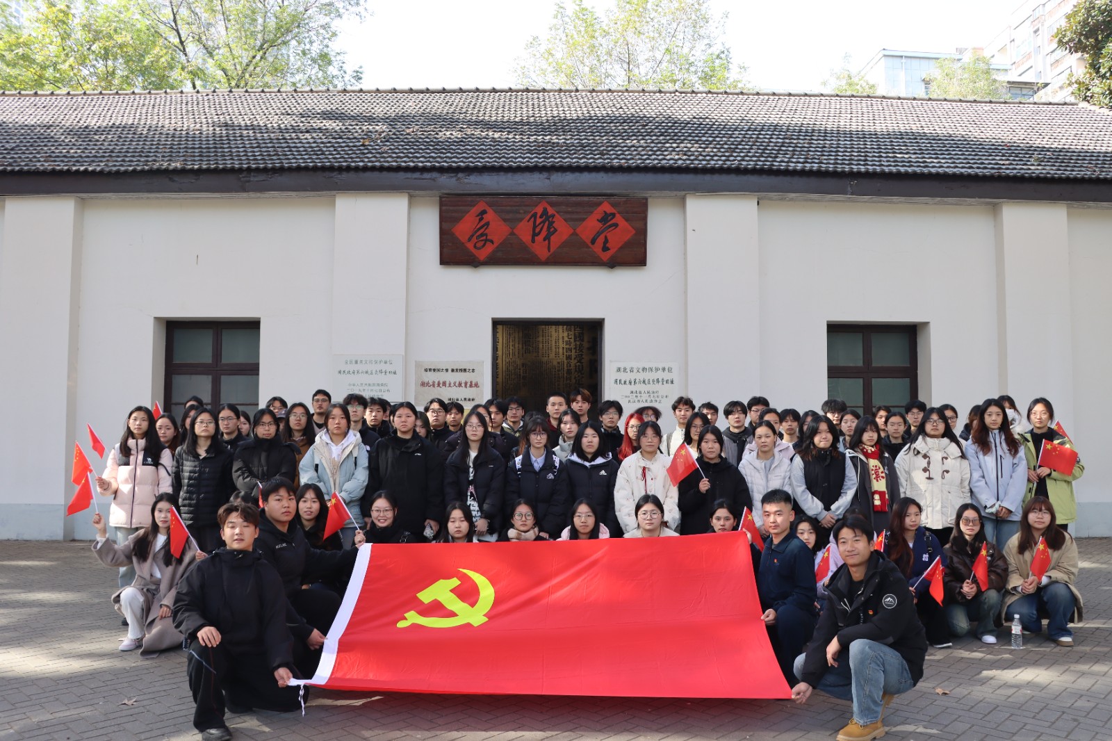 2025年11月29日上午,武汉中山公园内的受降堂庄严肃穆,湖北孝感美珈职业学院党校第六期入党积极分子培训班学员、党员发展对象及各党支部书记共93人,怀着崇敬之心在此开展红色教育实践活动。时值中国人民抗日战争暨世界反法西斯战争胜利80周年纪念之年,师生们以实地感悟传承抗战精神,缅怀先烈荣光。